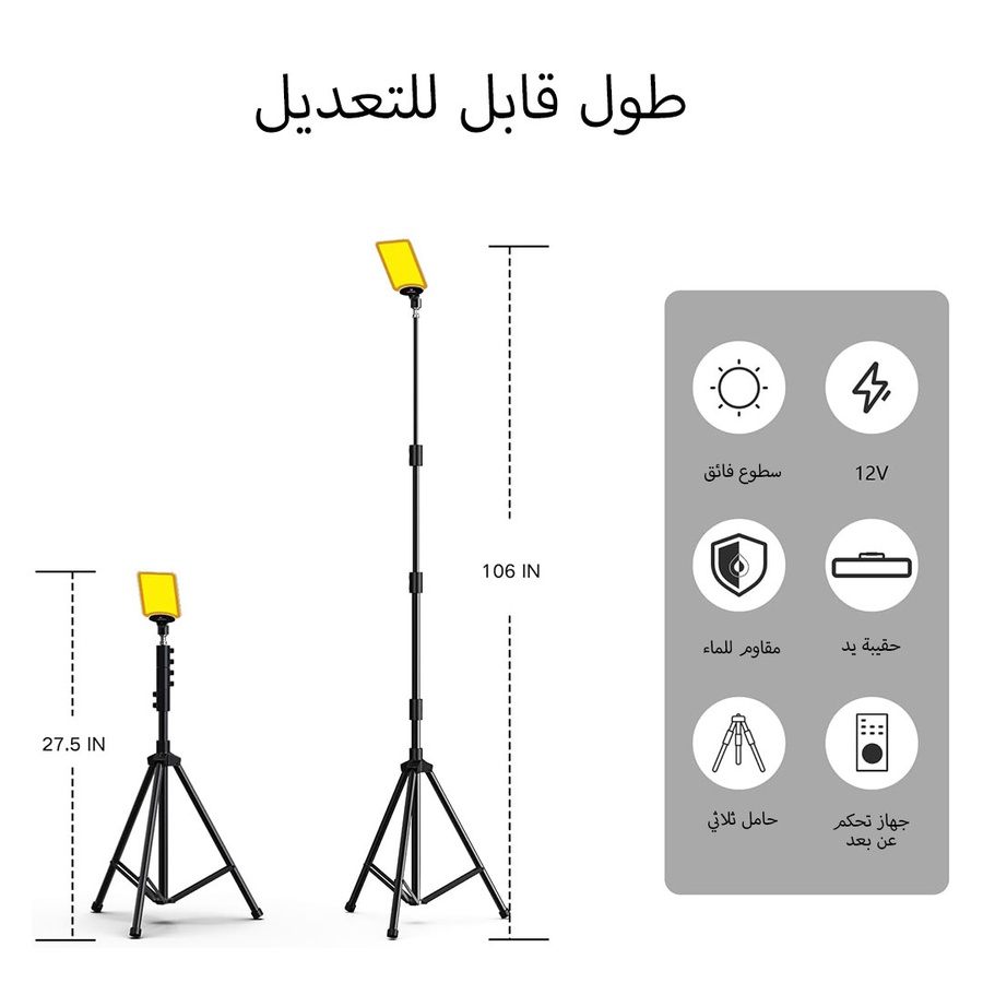 يمكن تشغيل المصباح باستخدام بطارية السيارة أو أي بطارية 12 فولت