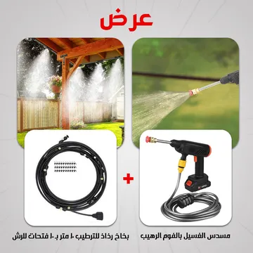 الثنائي الديناميكي الذي يمنح سيارتك والعناية بحديقتك تجربة استثنائية! مسدس الفوم بتقنيته المتطورة، يزيل الأوساخ والشحوم بسهولة، ويترك سيارتك لامعة كأنها جديدة. بخاخ الرذاذ بمداه الواسع الذي يصل إلى 10 أمتار، وفتحات الرش العشرة الدقيقة، يوفر تغطية مثالية لجميع الأسطح، مما يضمن ترطيبًا عميقًا وشاملًا. وقت أقل وجهد أقل: بفضل تصميمه المبتكر، يمكنك تنظيف سيارتك أو ري حديقتك في وقت قياسي وبأقل جهد.