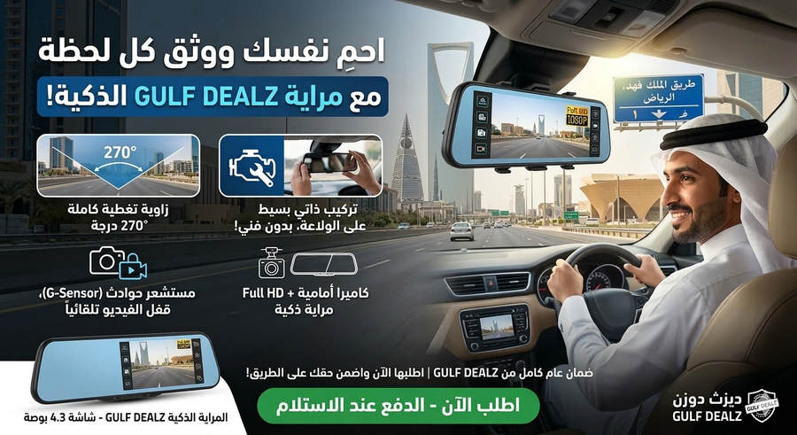 لا تشيل هم الحوادث المفاجئة أو مواقف الطريق الغامضة بعد اليوم. مع المراية الذكية، كل لحظة موثقة بجودة HD، وبتركيب بسيط ما ياخذ منك دقايق.