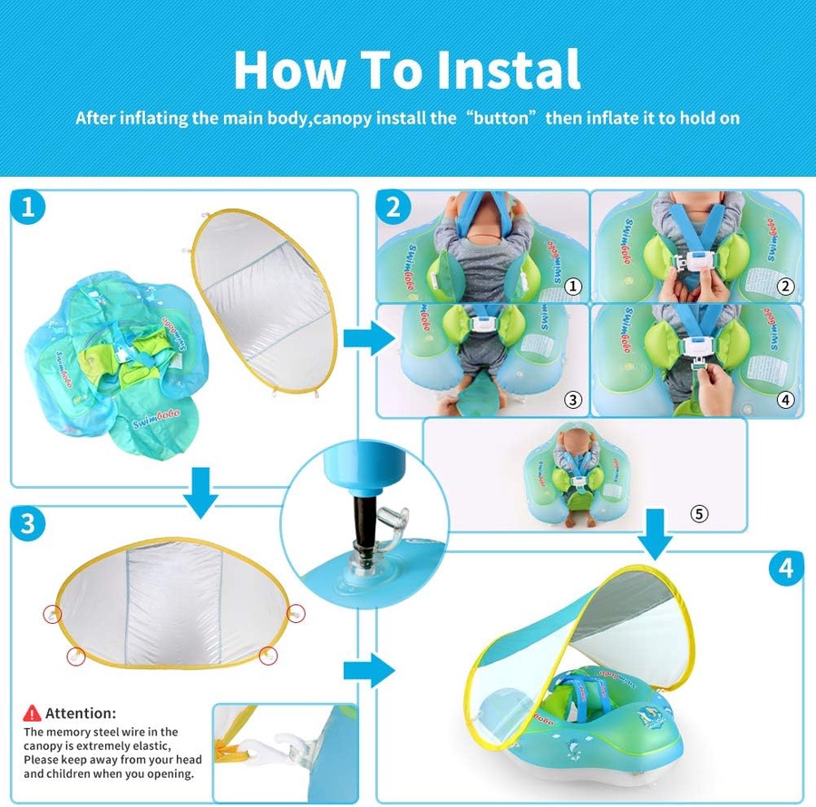 المميزات:* تحمي طفلك من أشعة الشمس الضارة أثناء اللعب في الماء. بها حلقة سباحة قابلة للفصل تمنع الطفل من االنقالب للخلف. دعم سفلي يمنع الطفل من االنزالق للخارج. دعم صدر إسفنجي غير قابل للنفخ يحمي بطن الطفل. تحتوي على حبل جر أمامي يساعد على تثبيت وضعية السباحة. بها إبزيم أمان: يوفر المزيد من األمان لطفلك. سهلة النفخ والتفريغ مما يجعلها سهلة التخزين والنقل. تا أكبر في الماء. حلقة وسادة هوائية رئيسية توفر ثباً حلقة وسادة هوائية علوية تمنع من النحافة وتعزز األمان. مصنوعة من مواد آمنة لألطفال. *تفاصيل سريعة:* الخامة: بالستيك بي في سي األبعاد: 0,1 x 46 x 95 سم. الوزن: 660 جرام اللون: أزرق. السن: من سن 3 أشهر إلى 6 سنوات يحتوي العرض على حبتين عوامة بمظلة.