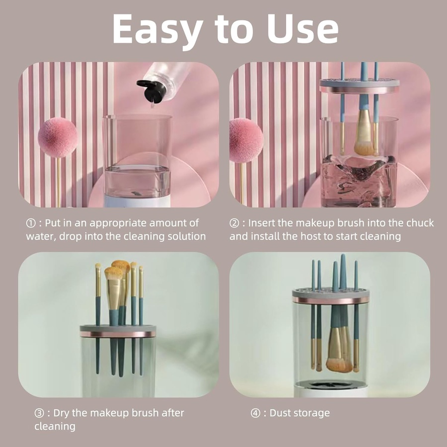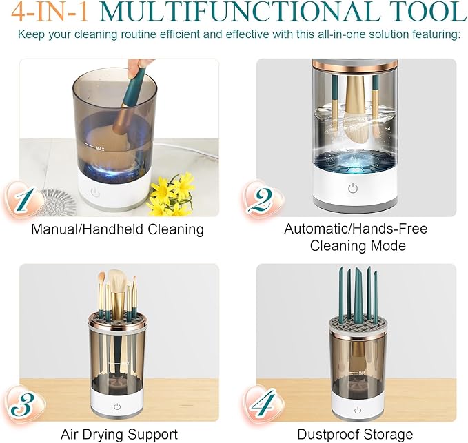 تنظيف سريع وسهل: يمكن لتنظيف فرش المكياج يدويًا أن يستغرق وقتًا طويلاً ومرهقًا. يمكن لمنظف فرش المكياج الكهربائي تنظيف الفرش في غضون ثوانٍ قليلة