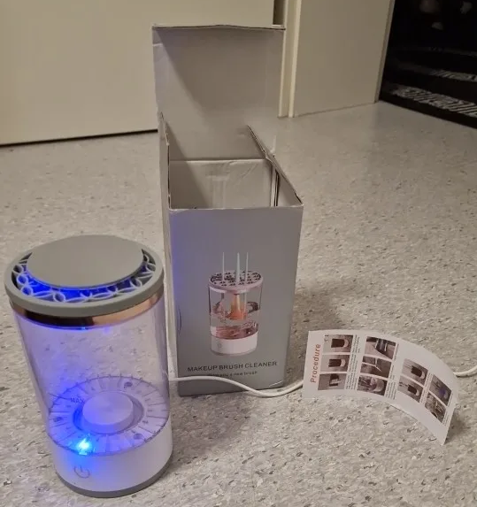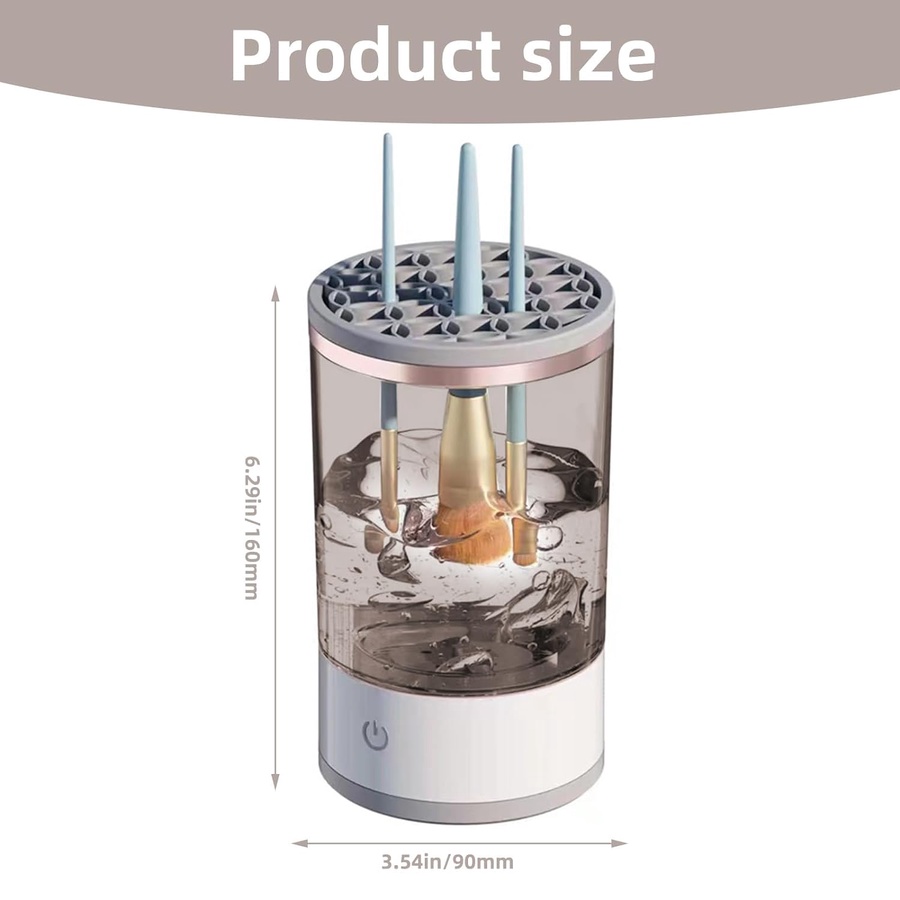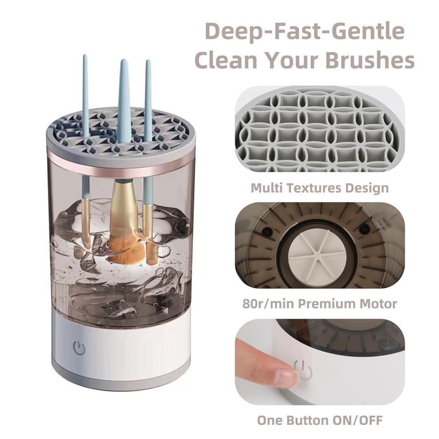 منظف فرش المكياج الكهربائي هو جهاز يستخدم لتنظيف فرش المكياج بسرعة وسهولة. يتكون عادةً من قاعدة بلاستيكية أو معدنية مع كوب مملوء بالماء. تحتوي القاعدة على محرك يهز الفرشاة ذهابًا وإيابًا في الماء، مما يزيل الأوساخ والبقايا.