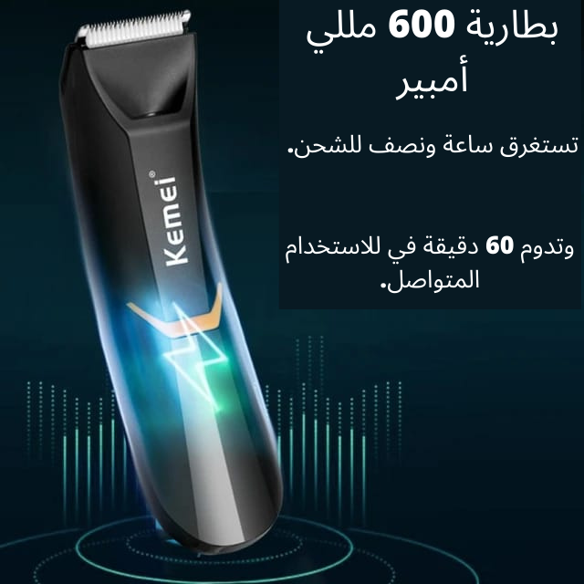 ماكينة حلاقة من كيمي لكامل الجسم والمناطق الحساسة للرجال والنساء مقاومة للماء قابل للغسل لاسلكية تعمل بالشحن بطارية 600 ملي امبير وقت الشحن: 1.5 ساعة تستخدم لاسلكيًا مريحًا باستخدام 45 دقيقة متواصلة تصميم كتم الصوت تصميم مريح محسن