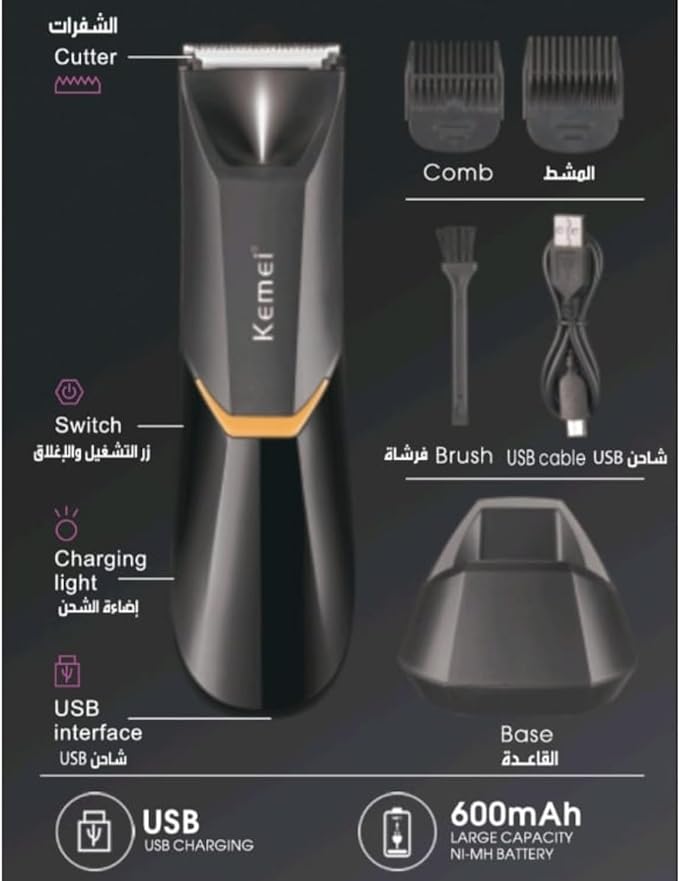 مقاومة للماء قابل للغسلتتميز الماكينة بتصميمها الأنيق والمريح يضمن قبضة قوية وثابتة أثناء الاستخدام، مما يسهل التحكم في حركة الحلاقة