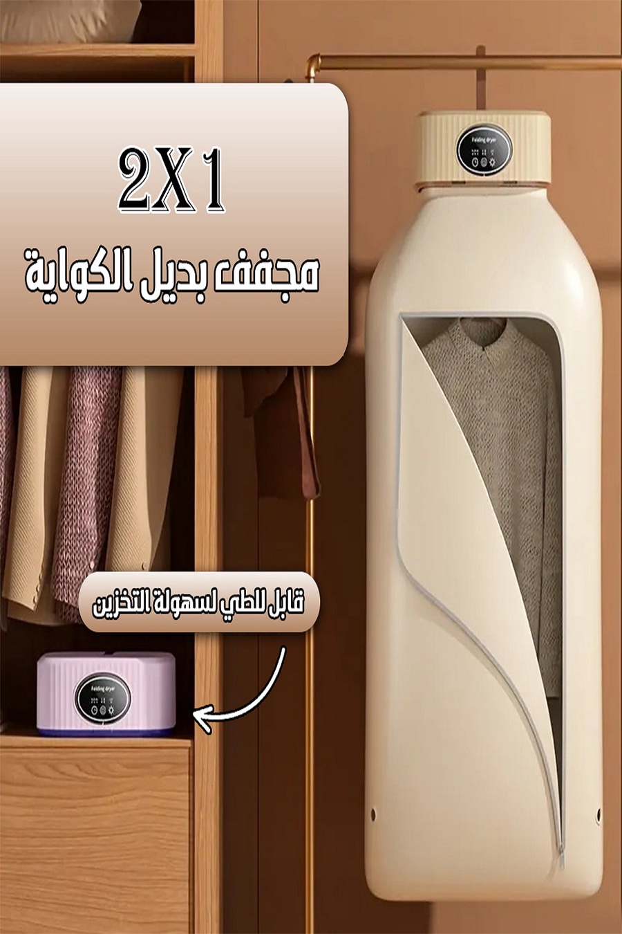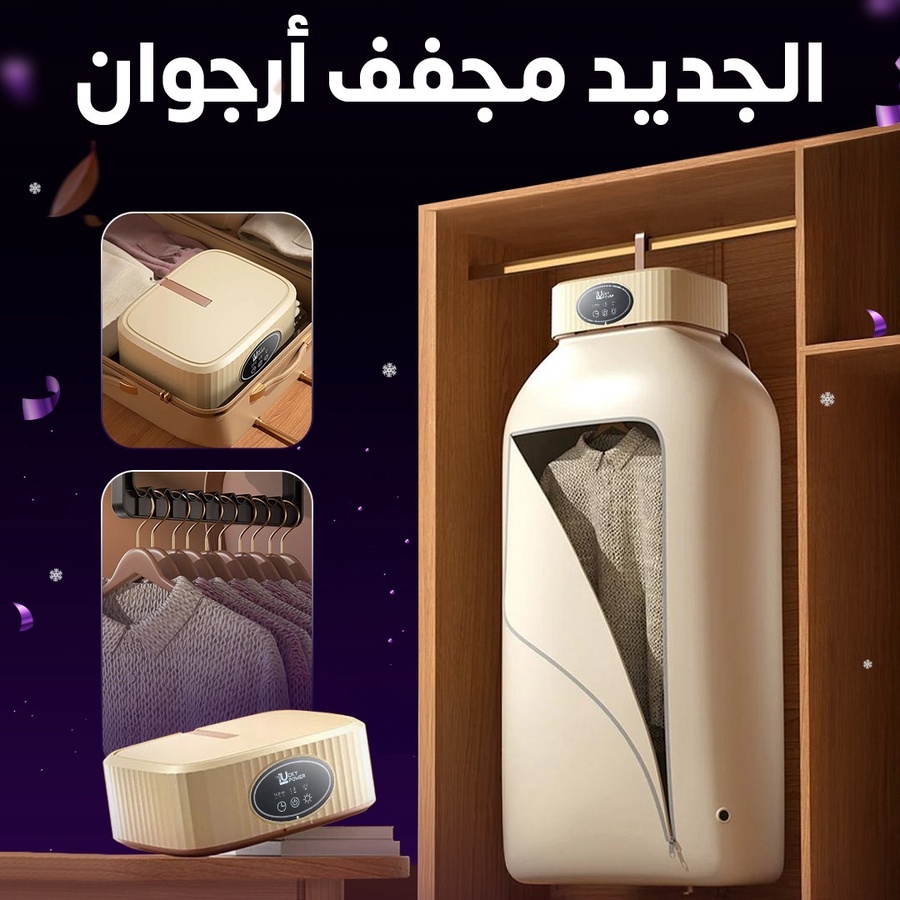 مجفف ملابس كهربائي بديل الكواية ٢*١ يجمع بين الكفاءة والراحة . هذا المجفف المحمول مصمم لتجفيف ملابسك بسرعة وكفاءة حيث يمكنه تجفيف 8 قطع من الملابس في 20 دقيقة فقط مما يجعله الحل الأمثل لإبقاء ملابسك دائما جديدة. يتميز المجفف بتشغيل هادئ ومؤقت مرن لتجفيف مريح وموفر للطاقة مما يساعدك في توفير فالكهرباء.